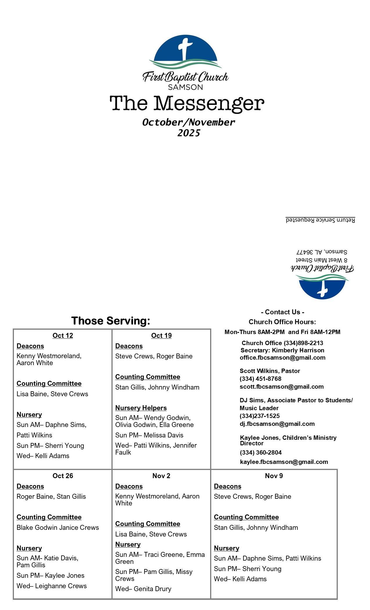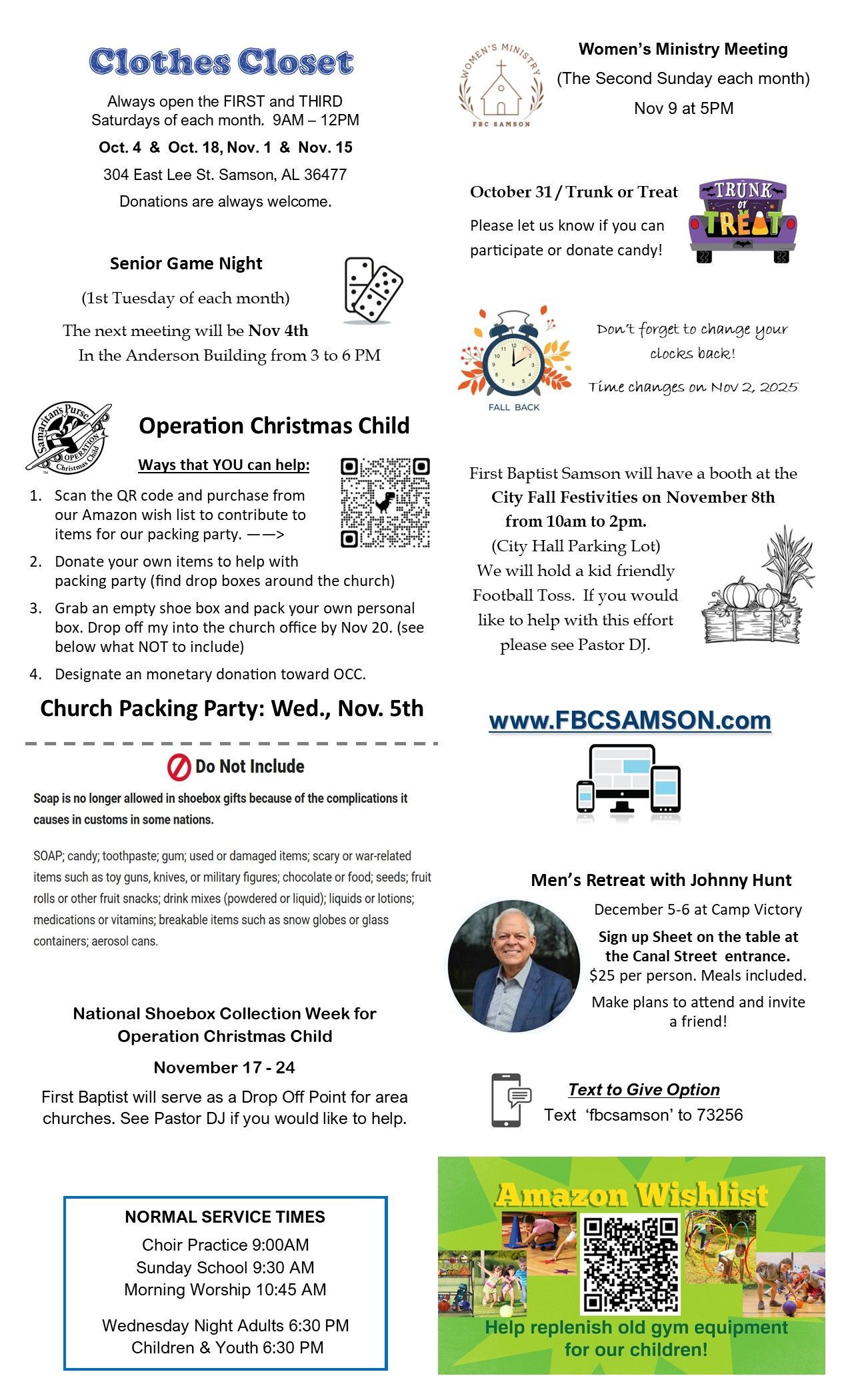Gather with us on Wednesday and Sundays to worship at FBC Samson.
